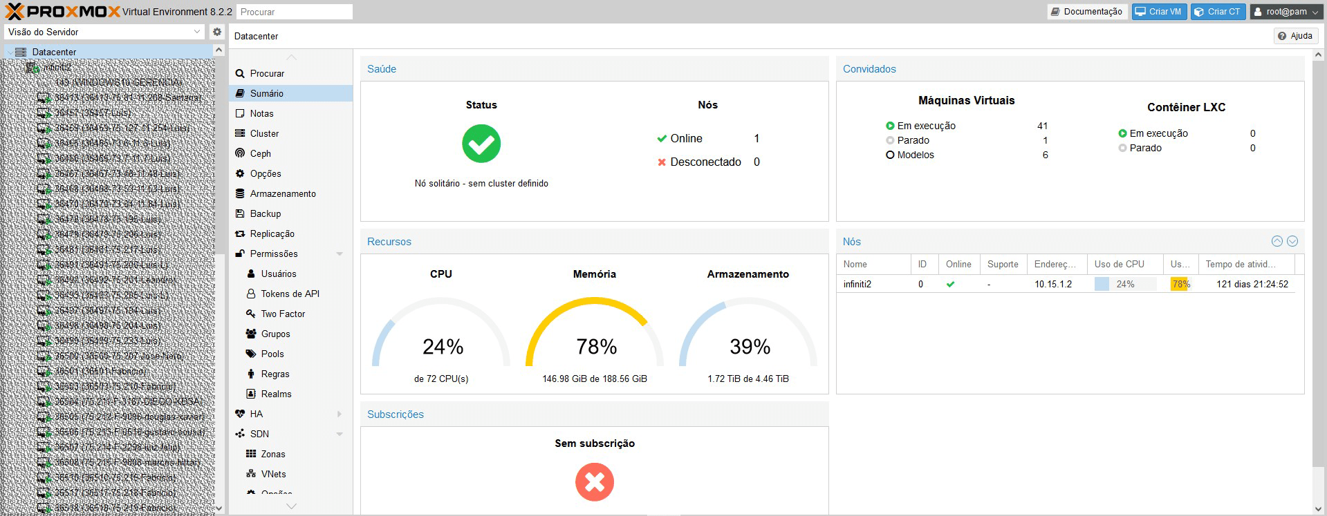 E também pode ver o uptime de um servidor nosso, 121 dias, começamos faz alguns meses